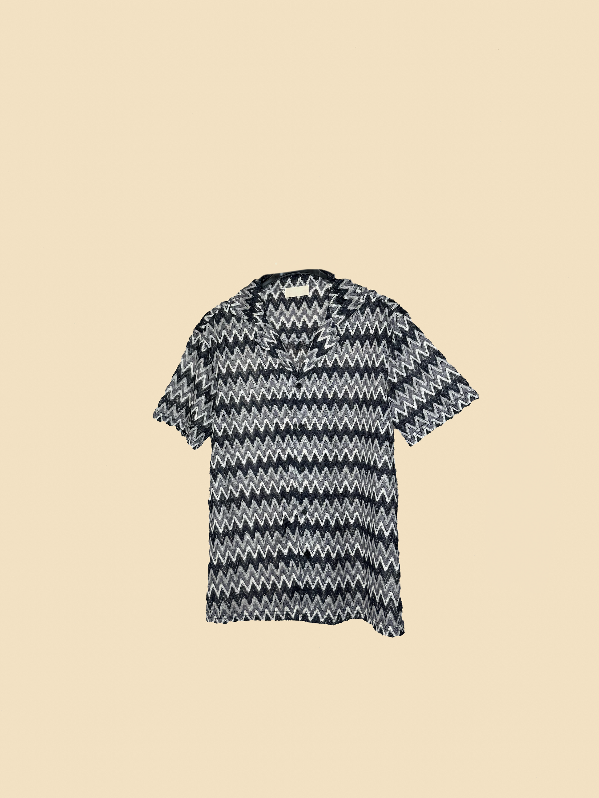 Kurzarmhemd mit Zickzack-Muster – Schwarz & Weiß